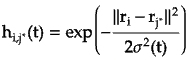 where 𝜎_0 is the initial neighborhood radius and 𝜏 is a time constant.