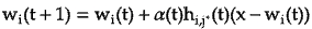w_i(t+1) = w_i(t) + η(t) * h(j,i,t) * (x(t) - w_i(t))