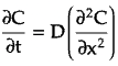 Second law: Change in concentration over time is proportional to second derivative of concentration w.r.t. position.