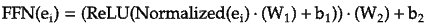 c) Feed-Forward Networks: Normalized output is passed through a feed-forward neural network consisting of two linear transformations: